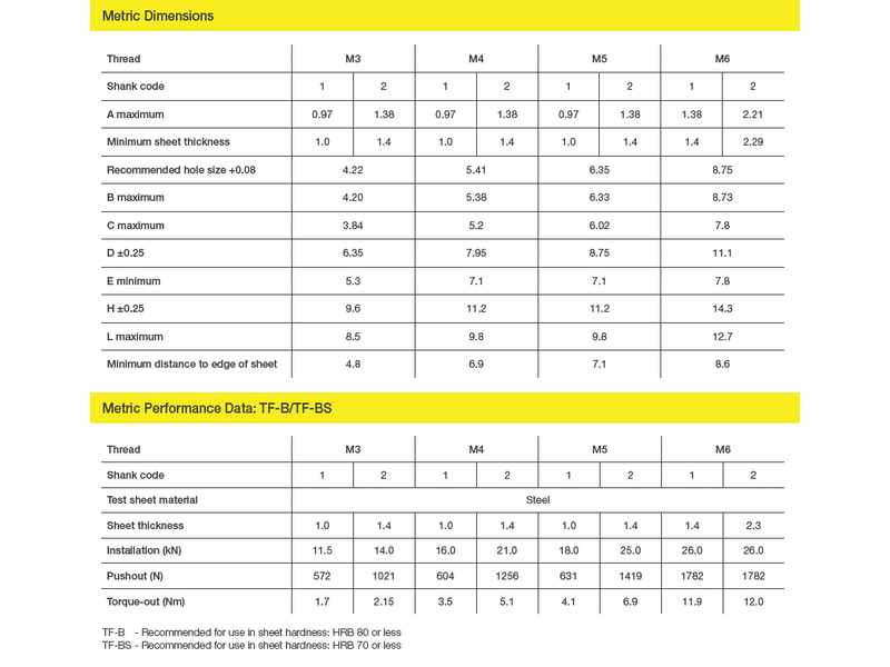 • Sizes: M3 to M6 / 4-40 to ¼-20 Unified