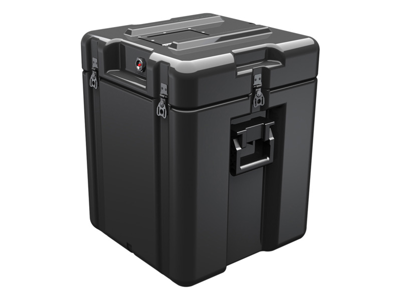 - Patented molded-in metal inserts for catch and hinge attachment points, which provide strength and spread loads to the container
