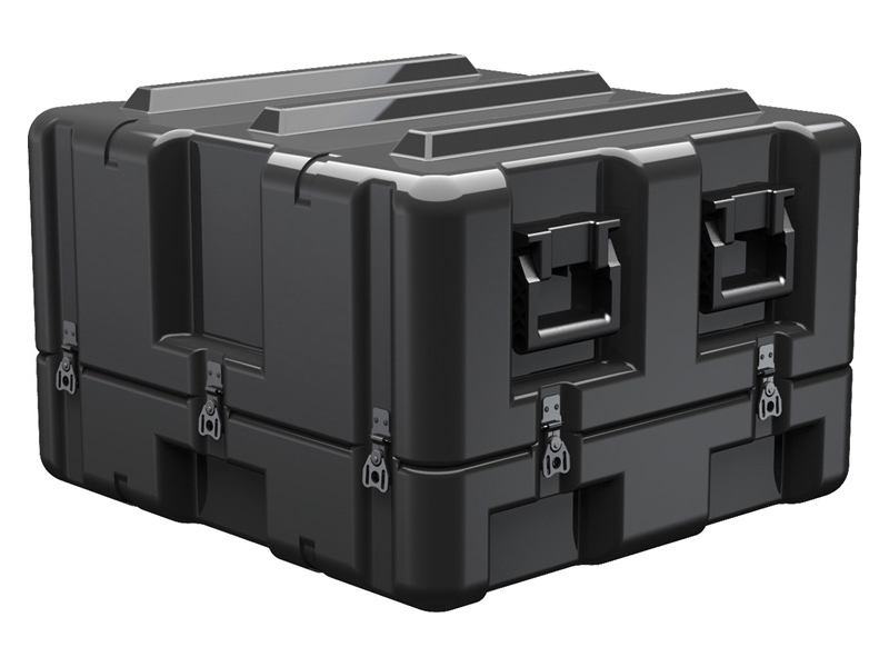 - Patented molded-in metal inserts for catch and hinge attachment points, which provide strength and spread loads to the container