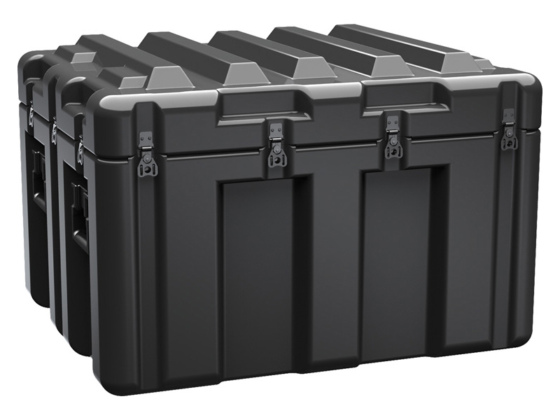 - Patented molded-in metal inserts for catch and hinge attachment points, which provide strength and spread loads to the container