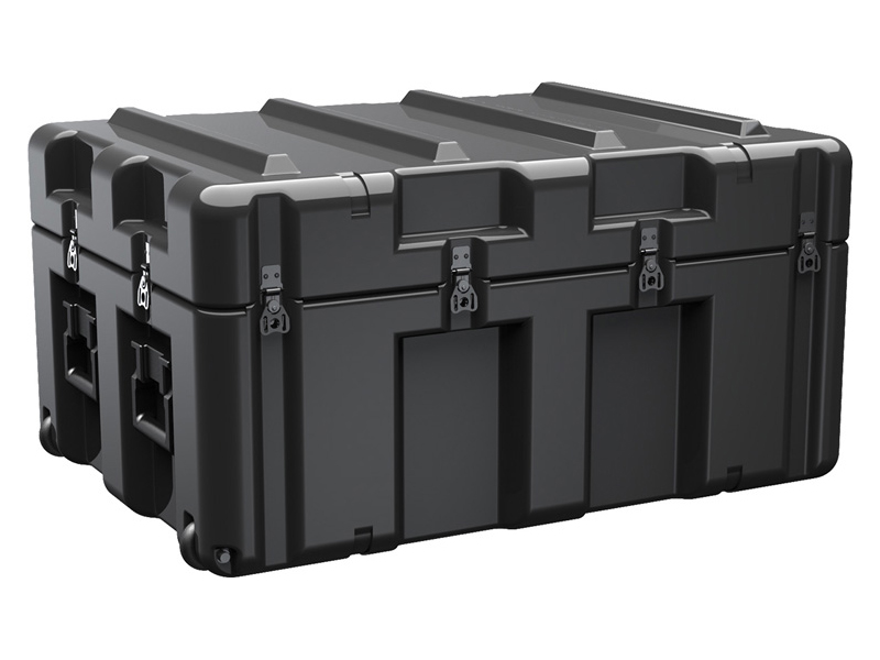 - Patented molded-in metal inserts for catch and hinge attachment points, which provide strength and spread loads to the container