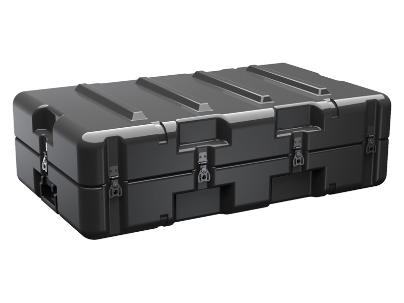 - Patented molded-in metal inserts for catch and hinge attachment points, which provide strength and spread loads to the container