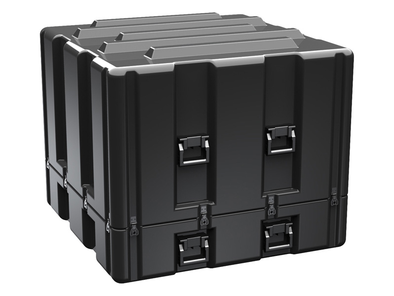 - Patented molded-in metal inserts for catch and hinge attachment points, which provide strength and spread loads to the container