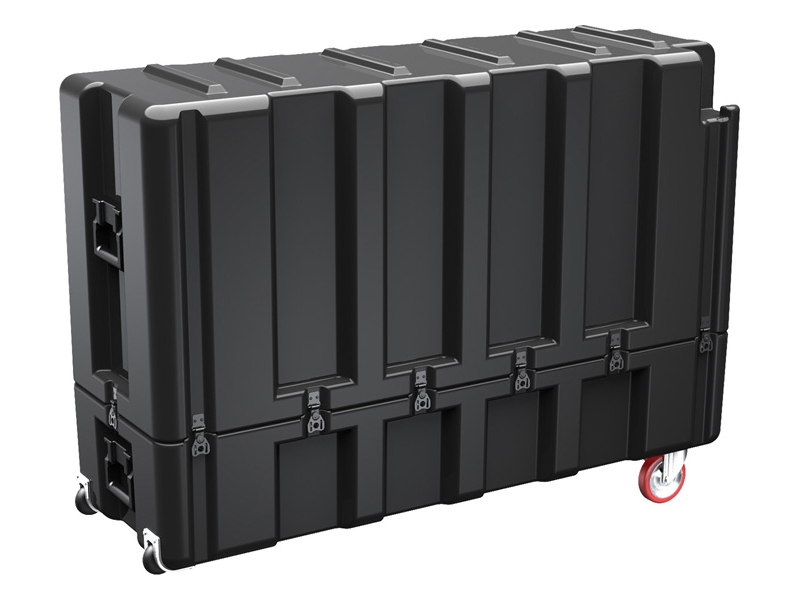 - Patented molded-in metal inserts for catch and hinge attachment points, which provide strength and spread loads to the container
