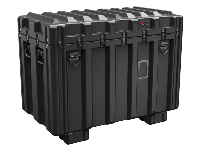 - Patented molded-in metal inserts for catch and hinge attachment points, which provide strength and spread loads to the container
