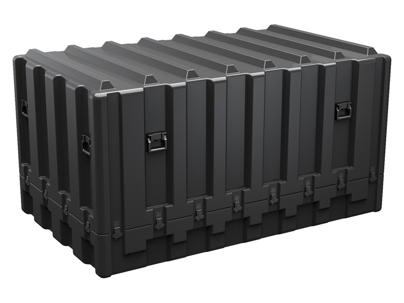- Patented molded-in metal inserts for catch and hinge attachment points, which provide strength and spread loads to the container