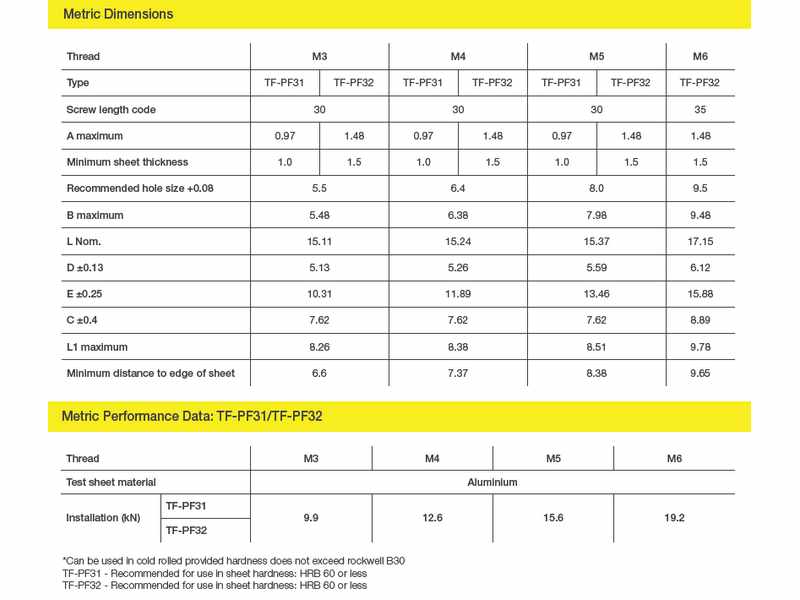 • Spessore minimo: 1mm (TF-PF31), 1.5mm (TF-PF32)