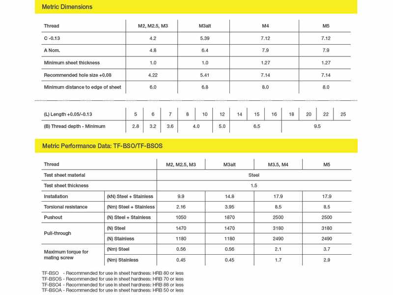 • Materiali: acciaio (TF-BSO), alluminio (TF-BSOA), acciaio inossidabile (TF-BSOS), acciaio inossidabile serie 400 (TF-BSO4)