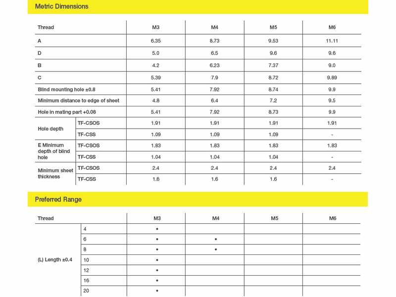 • Materiali: acciaio inossidabile (TF-CSS, TF-CSOS)