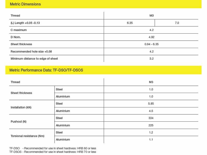 • Materiali: acciaio (TF-DSO), acciaio inossidabile (TF-DSOS)