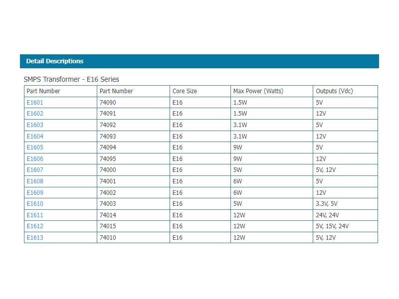 E16 Flyback Power Transformer