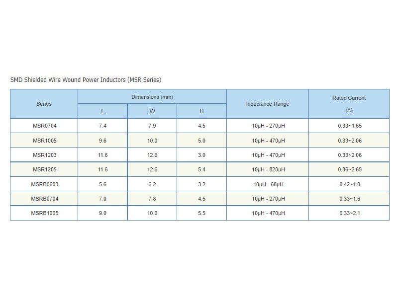- Vari induttori ad alta potenza sono superiori per essere ad alta saturazione per il montaggio in superficie.