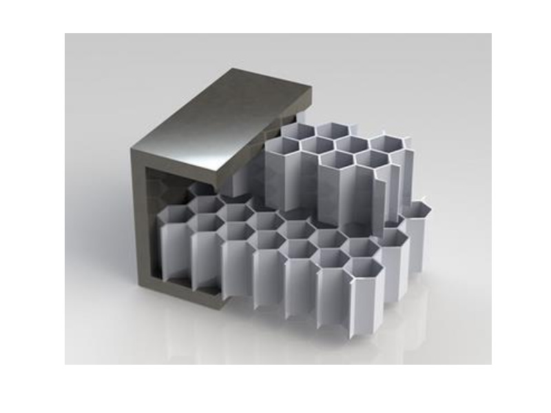 I pannelli di ventilazione in alluminio a nido d'ape per il flusso d'aria sono costituiti da un foglio di alluminio a nido d'ape contenuti in un telaio di montaggio in alluminio estruso rigido. Il foglio, formato e laminato in una serie di celle a nido d'ape che sono incollate e perforate o saldate al laser sulla giunzione, assicurano un percorso conduttivo ad ogni giunto. Sebbene il foglio sia conduttivo in tutte le direzioni, per migliorare le prestazioni EMI, si consigliano due pezzi di nido d'ape polarizzati a 90° l'uno rispetto all'altro.